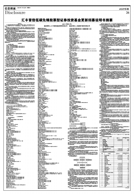 汇丰晋信低碳先锋股票型证券投资基金更新招募说明书摘要