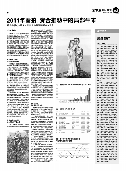 在记者看来,这份报告恰恰印证了记者的基本判断,那就是在上周《艺术资产》的“春拍盘点”专题报道所表述的:一方面是当前的艺术市场以不断刷新的天价纪录为标志的行情上冲势头似乎碰到了天花板,另一方面是中高价拍品继续受到热捧;一方面是书画、瓷杂、油雕三大板块发展不平衡,另一方面是各大板块都有表现优异之处。这次的市场报告披露的数据证明,当前的艺术品市场正处在一种局部牛市之中,各个板块此起彼伏,显示了资金推动型的市场特有的躁动。