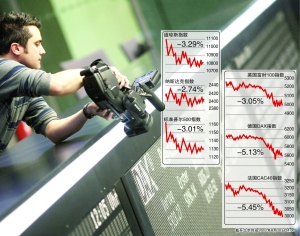 10日,欧美股市交易时段,市场传言法国的“3A”主权债信评级或继美国后遭遇下调,令投资者再度对欧洲主权债务危机的担忧升温,欧洲股市由涨转跌,美国股市开盘一路下滑。