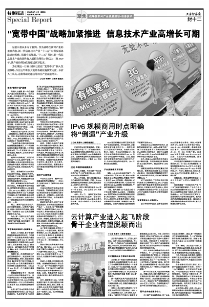 为此,新一代新兴技术产业发展思路明确提出,“十二五”将实施“宽带中国”战略,加快构建下一代国家新兴基础设施网络。