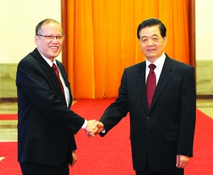 国家主席胡锦涛31日下午在人民大会堂同来华进行国事访问的菲律宾总统阿基诺举行会谈。两国元首一致表示,深化中菲传统友谊,促进两国务实合作,把中菲战略性合作关系提高到新水平。