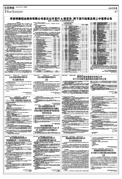 河南明泰铝业股份有限公司首次公开发行A股定价、网下发行结果及网上中签率公告