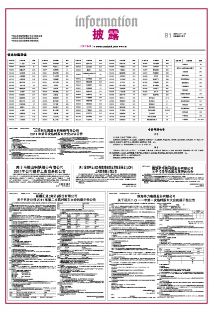 关于召开二O一一年第一次临时股东大会的提示性公告