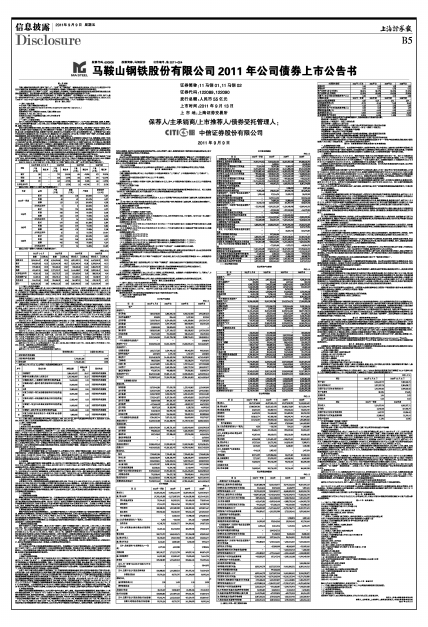 马鞍山钢铁股份有限公司2011年公司债券上市公告书