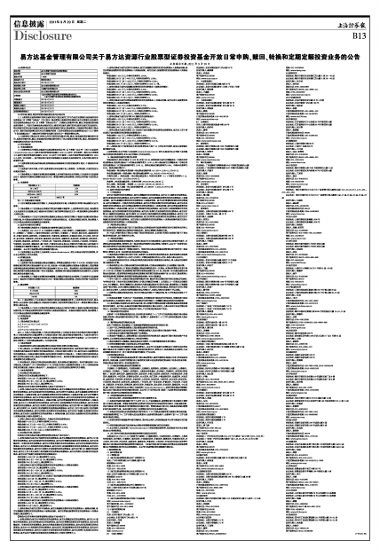 易方达基金管理有限公司关于易方达资源行业股票型证券投资基金开放日常申购、赎回、转换和定期定额投资业务的公告