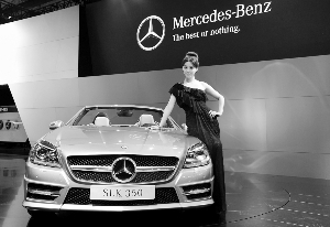 9月16日,梅赛德斯—奔驰展台最抢眼,因为有全新梅赛德斯—奔驰SLK级敞篷跑车,因为其品牌大使范冰冰掏钱买了奔驰SLK级敞篷跑车做自己30岁的生日礼物。