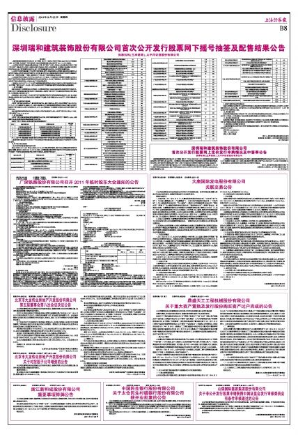 深圳瑞和建筑装饰股份有限公司首次公开发行股票网下摇号抽签及配售结果公告