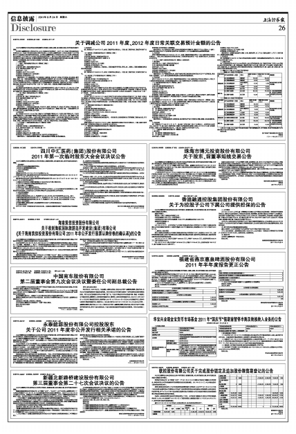 证券代码:601766(A股) 股票简称:中国南车(A股) 编号:2011-058