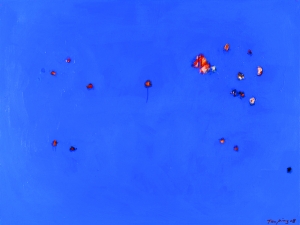 当谭平后来为人师表,能将所受之恩反馈于人的时候,他希望他能影响学生的,是他的生活态度和价值观,以及对人对事对艺术的态度。作为老师,谭平一直在抛给学生同样一个问题:“要不断地提问他们,你们想做什么?而不是将老师的想法灌输给他们。”和谭平画面中的圈圈点点以及流动的线条一样,没有棱角的东西总是比较容易让人接受,谭平的轻松与感性区别于传统抽象中的精准和理性,正如他想带给观者的,是能引起共鸣的感动。
