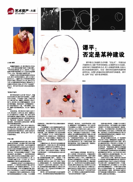 这种不同于传统(动笔之前有个既定的心里形象或草稿)创作的方式,看上去随意性很强,但是大的方向却是胸有成竹,在某一段时间内连续性的创作便会带有这一时期与其他时间区别性的符号和感受。谭平说,这种“否定”或许是某种建设。