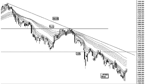 如果RSI背离形态成功,2300点附近的支撑成功,那么投资者将考虑趋势反转的可能形态。很有可能市场会形成一个盘整形态,将2300点作为支撑位。这种盘整可能会包括在2300点至2440点附近的暂时的压力位之间几周的震荡行为。若突破至这一暂时的压力位以上,第一上涨目标位于2600点附近。当运行至这一目标时,市场还必须收盘于GMMA长期组上边缘以上。这将确认突破的力量以及趋势方向改变的可能。