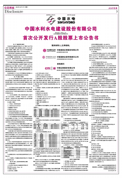中国水利水电建设股份有限公司首次公开发行A股股票上市公告书