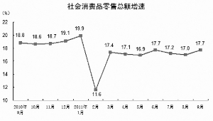 据介绍,今年前三季度,固定资产投资增速基本上稳定在25%左右,社会消费品零售总额基本上稳定运行在17%左右。从实体经济来看,运行态势也是比较稳定的,规模以上工业增加值的增长速度基本在14%附近波动。
