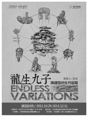 由中展德美(北京)展览有限责任公司策划的“龙生九子——隋建国师生作品展”将于2011年10月29日至12月11日在798艺术区红星画廊举行。展览将展出中国著名当代雕塑家隋建国和来自中央美术学院雕塑系的29名学生的三十余件作品,涵盖雕塑、装置、影像、行为等门类。