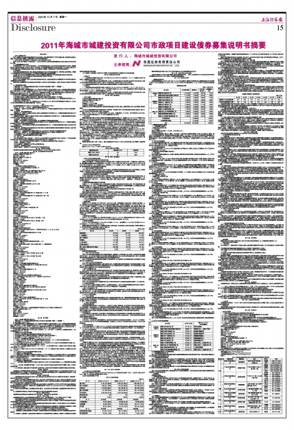 2011年海城市城建投资有限公司市政项目建设债券募集说明书摘要