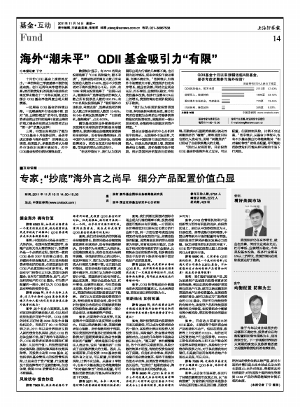 “因此从宏观面看,目前投资QDII基金抄底海外言之过早,可以配置,但要控制风险,比例不宜过高。”张宇表示,从基金3季报中,也有不少基金提出仍将继续维持“相对偏防御性”的组合配置,尽可能防范欧债危机可能失控导致的市场下行风险。