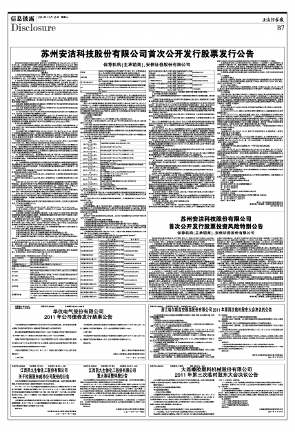 苏州安洁科技股份有限公司首次公开发行股票发行公告