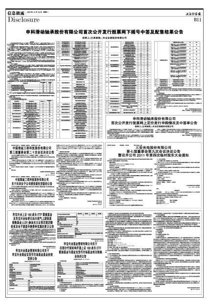 申科滑动轴承股份有限公司首次公开发行股票网下摇号中签及配售结果公告