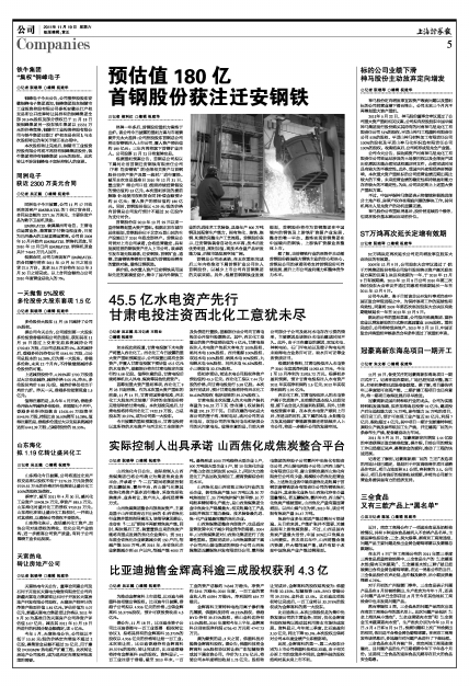 2011-11-19 来源:上海证券报 作者:⊙记者 阮晓琴 ○编辑 祝建华