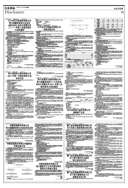 1、四川西昌电力股份有限公司2011年第一次临时股东大会决议;