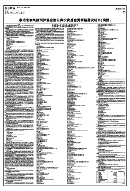 泰达宏利风险预算混合型证券投资基金更新招募说明书(摘要)