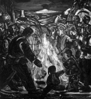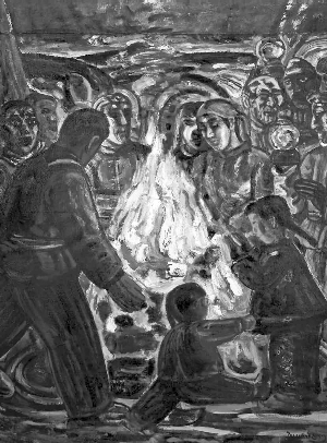在图录的第二页就是大幅的被称为《烤火》的段正渠作品,且在内页有重要篇幅介绍改作品和艺术家。由此可见,此次秋拍,所谓这幅段正渠的《烤火》是除林风眠的一幅风景画之外一幅主打作品之一。