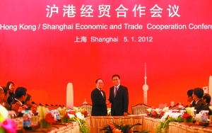 图为上海市市长韩正(右)与香港特别行政区行政长官曾荫权在签约仪式上。 相关报道详见封二 新华社图