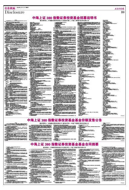 一、中海上证380指数证券投资基金(以下简称“本基金”)的募集已获中国证监会证监许可【2011】1507号文(《关于核准中海上证380指数证券投资基金募集的批复》)核准。中国证监会对本基金的核准并不代表中国证监会对本基金的风险和收益做出实质性判断、推荐或保证。