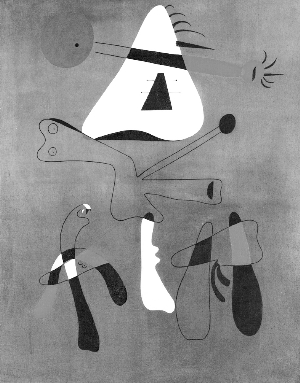 1930年代是米罗创造力爆发的黄金时代,当时他初次脱离形形色色的外在影响,开创了独步画坛的艺术风格。这些作品不仅对后世影响深远,就连米罗本人也视为个人的突破。他曾在给著名绘画大师马蒂斯(Matisse)的信中,形容这批作品为“一次重大的成功,艺术生涯中值得纪念的一大喜事”。这批作品在艺评界也引起前所未有的热烈讨论,为米罗掀开事业的新一页。这件作品仿佛与每位观赏者对话,形象虽然抽象,意境却清晰可辨,由此可见米罗决心投入抽象主义的怀抱,但同时仍以其生活经验作为创作画中形象的基础。