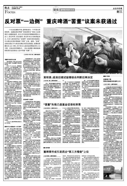 反对票“一边倒” 重庆啤酒“罢董”议案未获通过