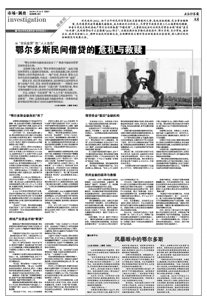 时光迈向2012, 始于去年的民间信贷危机呈愈演愈烈之势:各地老板跑路、民企资金链断裂、民间集资风波等屡屡见诸报端,成为舆论关注的焦点。尽管货币政策实质上已从偏紧转向稳健,但昔日风光无限的房地产等行业仍然备感“乍暖还寒”,大量投向这些行业的民间资金出现“深套”甚至“打水漂”,民间借贷似乎正在遭遇“2012预言”。本报近期分派多路记者赴温州、鄂尔多斯、长沙等地,遍访企业、政府及金融人士,调研当地民间金融生态,全面解析热点案件背后的制度及社会原因,深入探讨民间金融规范与发展之途。