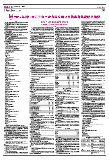 2012年浙江金汇五金产业有限公司公司债券募集说明书摘要
