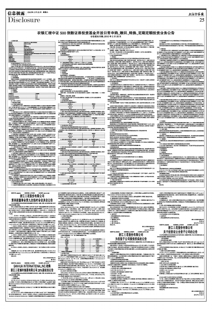 农银汇理中证500指数证券投资基金开放日常申购、赎回、转换、定期定额投资业务公告