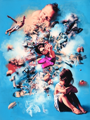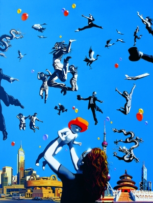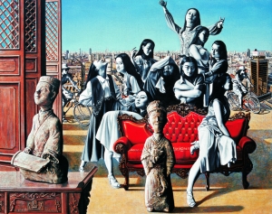 上个世纪九十年代,中国的社会经济正经历着极速发展变化,文化的传统与现代、东方与西方在同一时期并置,似乎进入了文化“嘉年华时代”。钟飙绘画敏感地反映了那个纷繁复杂、浮躁不安的“当下”。