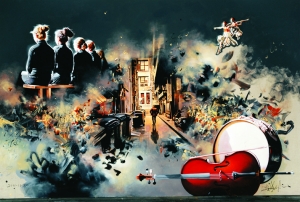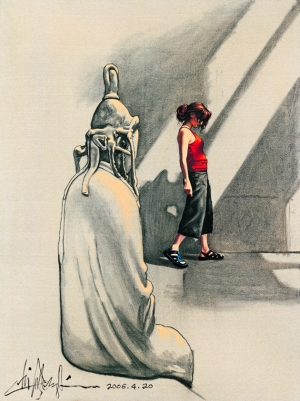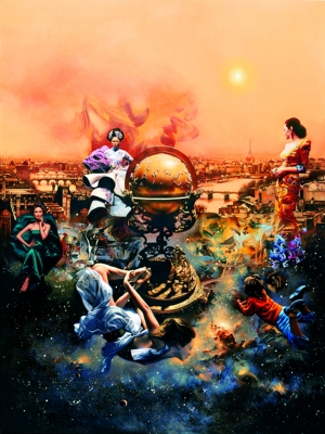从那个时候起,钟飙开始了他的第一个艺术阶段:画面中不同来源、不同时空、不同文化背景、彼此矛盾的事物混杂一起,产生出一种异样的感觉。绘画图像中的“异样”,正是那个时代的显影。这个时期,他称之为“图像际遇”。