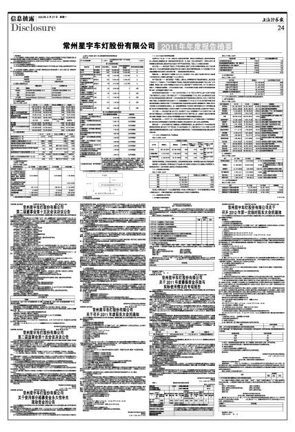 常州星宇车灯股份有限公司2011年年度报告摘要