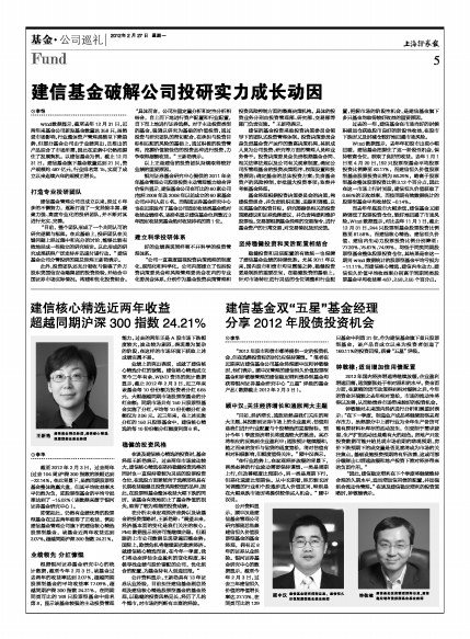 建信核心精选近两年收益超越同期沪深300指数24.21%