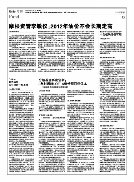 摩根资管李敏仪:2012年油价不会长期走高