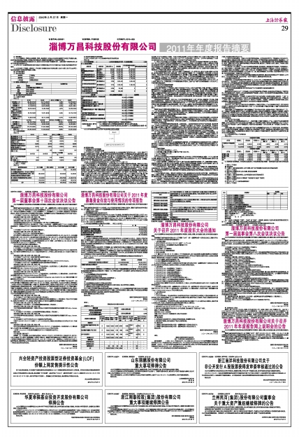 淄博万昌科技股份有限公司2011年年度报告摘要
