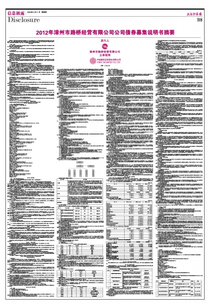 募集说明书摘要:指发行人根据有关法律、法规为发行本期债券而制作的《2012年漳州市路桥经营有限公司公司债券募集说明书摘要》。