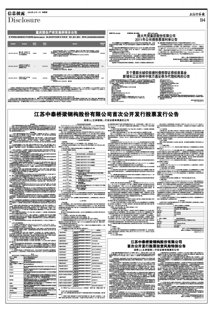 江苏中泰桥梁钢构股份有限公司首次公开发行股票发行公告
