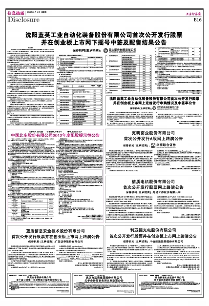 沈阳蓝英工业自动化装备股份有限公司首次公开发行股票