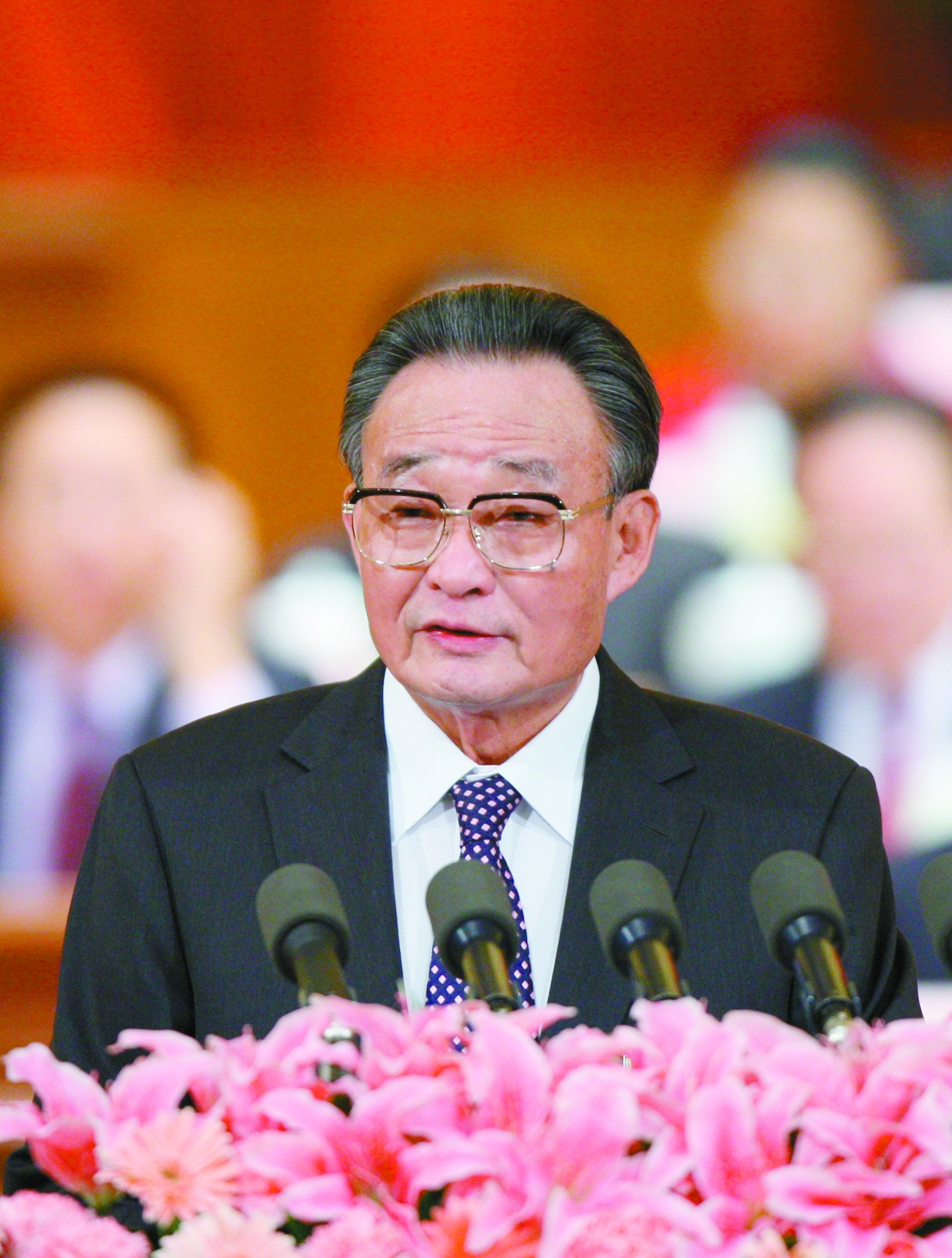 9日,十一届全国人大五次会议在北京人民大会堂举行第三次全体会议。全国人大常委会委员长吴邦国作全国人民代表大会常务委员会工作报告。 新华社图