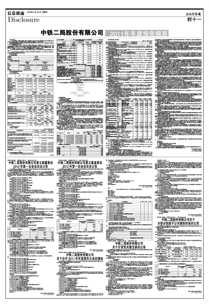 中铁二局股份有限公司第五届董事会2012年第一次会议决议公告