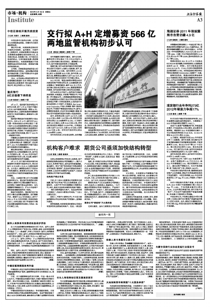 交行拟A+H定增募资566亿 两地监管机构初步认可