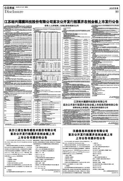 江苏裕兴薄膜科技股份有限公司首次公开发行股票并在创业板上市发行公告