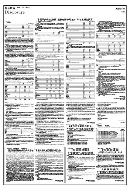中国平安保险(集团)股份有限公司2011年年度报告摘要