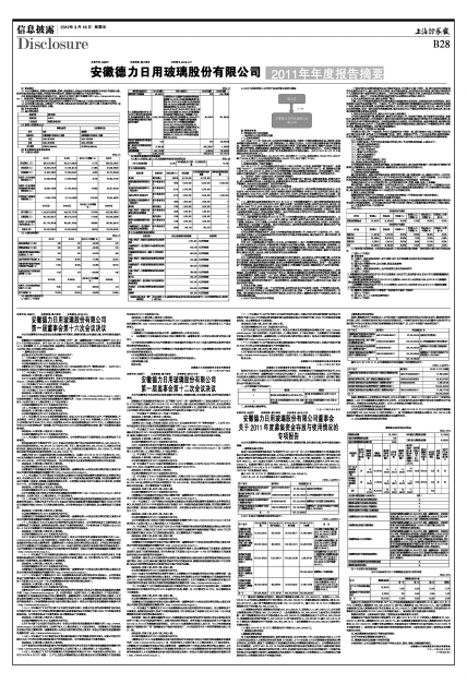 安徽德力日用玻璃股份有限公司2011年年度报告摘要