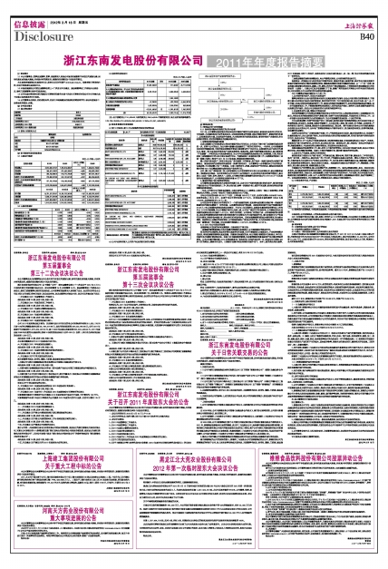 浙江东南发电股份有限公司2011年年度报告摘要