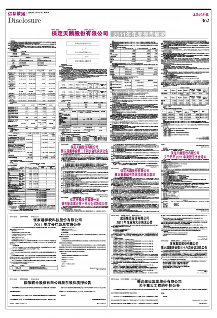 保定天鹅股份有限公司2011年年度报告摘要
